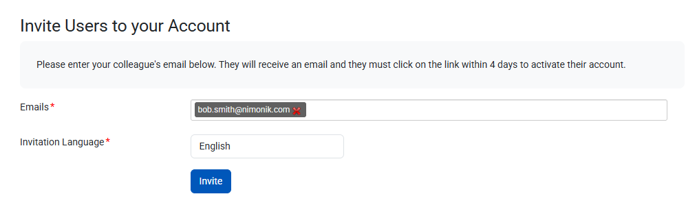 - Once the email invitation has been sent, the user can create a password and join the account. As of May 2025, the invitation tokens no longer expire.