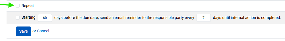 - Optionally, update the number of days before the due date to send the email reminder. The default is 60 days.