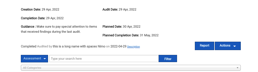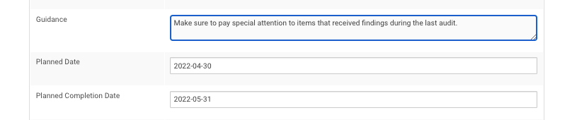 Please note, only Date and Text type custom fields are currently available for audits. User and Risk type custom fields will be added in the future.