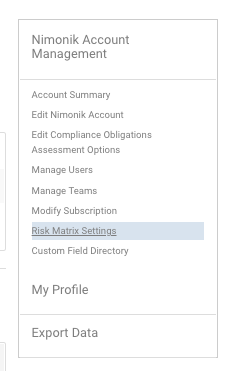 Create your Risk Matrix on the Settings Page. (Account Administrators Only)
