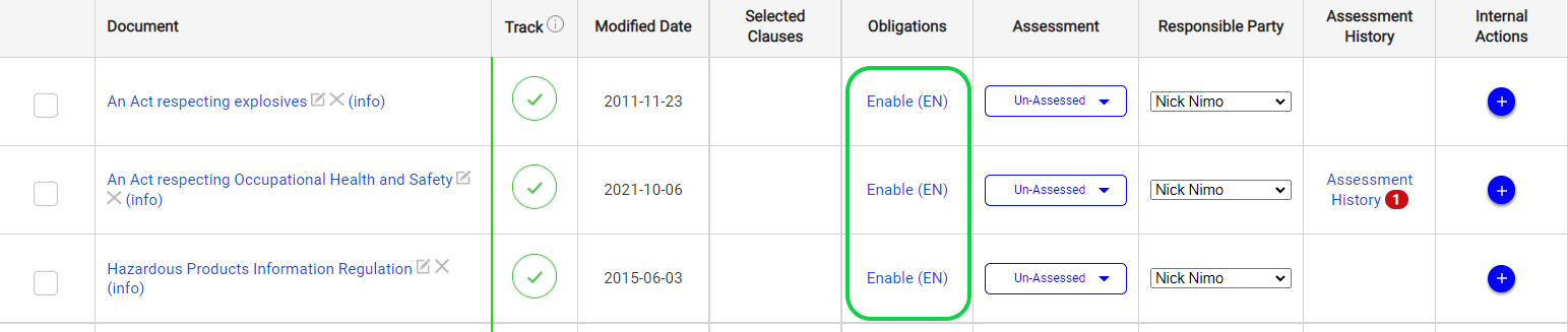 - Clauses will receive updates from Nimonik to notify responsible users about updates to the document.