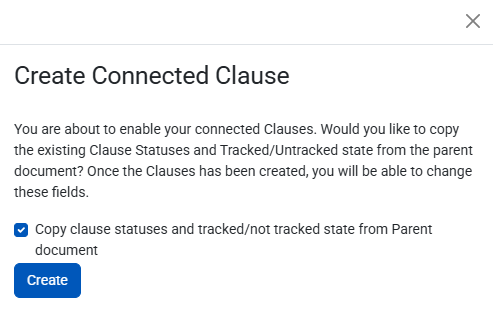 - In the resulting modal you will be able to choose whether or not the Child CLCO will inherit the clauses and tracked/not tracked state from the Parent.