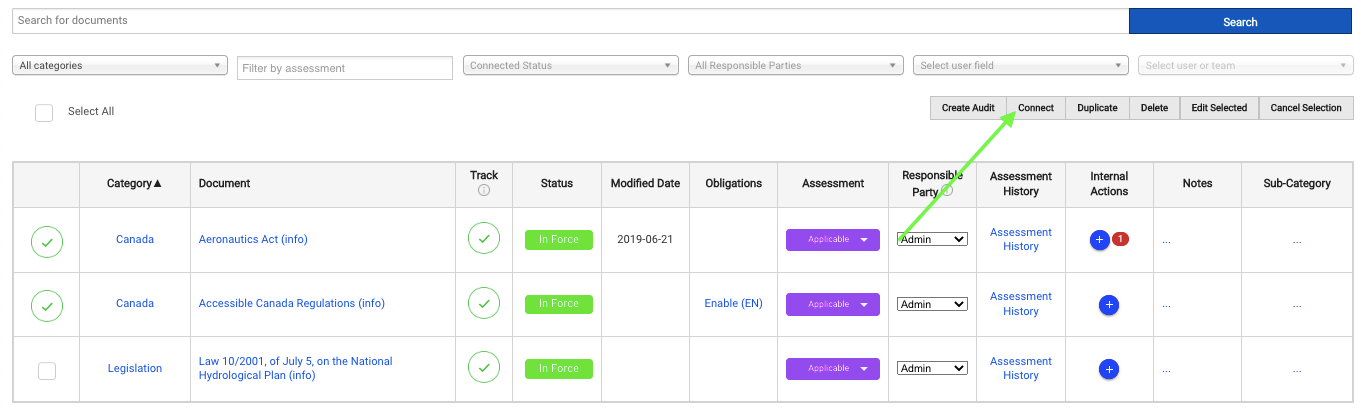 - Use the checkboxes in the column on the left to select the documents you wish to connect.