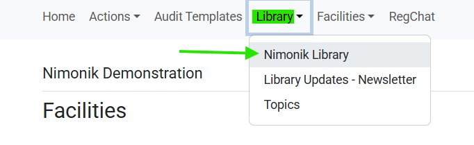 Once signed in, click the menu option "Library", then the sub option "Nimonik Library".