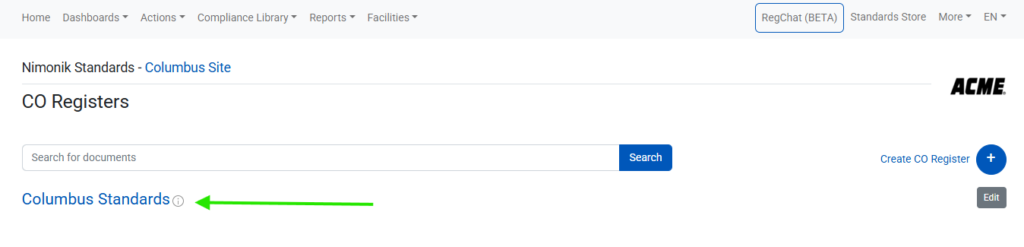 On the Register’s page, you will see the full list of Standards your organization subscribes to for that specific facility. To access the Standard, click on the title.