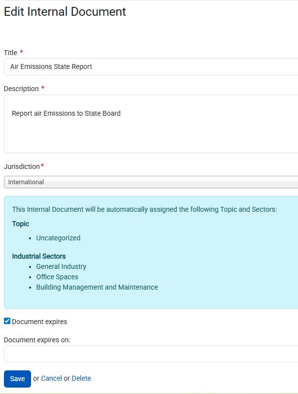 Once an internal document has been added to your account, administrators can edit its title, description, jurisdiction, and document expiration date by clicking on the edit symbol on the document page.