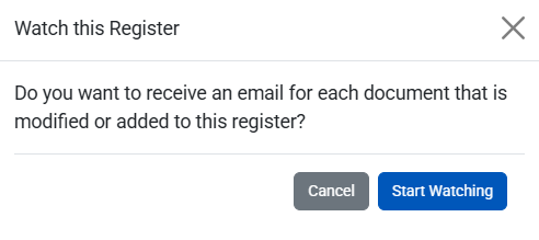- Users can choose to "Watch" any of the registers that they have access to by clicking the bell icon at the top of the page.
