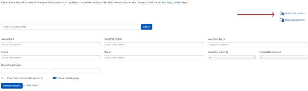 En plus des milliers de documents externes disponibles dans votre compte, Nimonik vous permet de télécharger des documents internes dans la bibliothèque. Ces documents internes seront propres à votre compte, mais pourront être ajoutés aux registres comme n'importe quel document externe.
