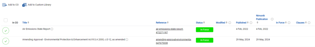 • Si vous avez demandé une analyse, l'équipe du service clientèle de Nimonik vous contactera pour confirmer le coût et procéder au paiement. Dans la plupart des cas, les documents seront analysés et disponibles au niveau des exigences dans les 14 jours suivant la demande.