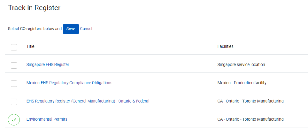 • Sur la page suivante, choisissez le ou les registres auxquels vous souhaitez ajouter vos documents internes. Cliquez sur « Enregistrer » pour les ajouter à votre ou vos registres.